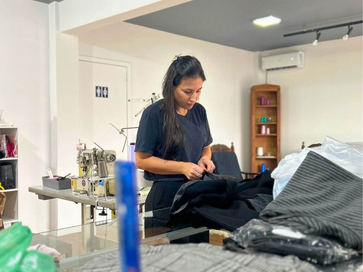 No Ateliê Agulhas e Alfinetes, cada peça recebe atenção única. A proposta é ajudar clientes a darem uma nova vida àquelas roupas que precisam de pequenos reparos.